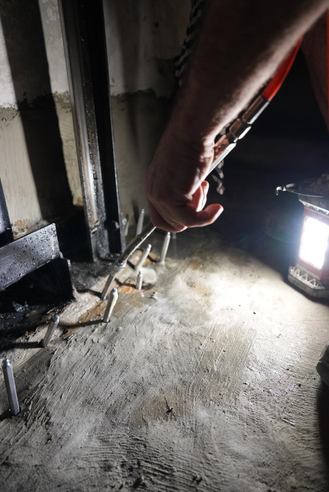 Small injection ports are installed along the crack or joint line. Unlike excavation-based systems, this process does not require digging up driveways, landscaping, or internal flooring.