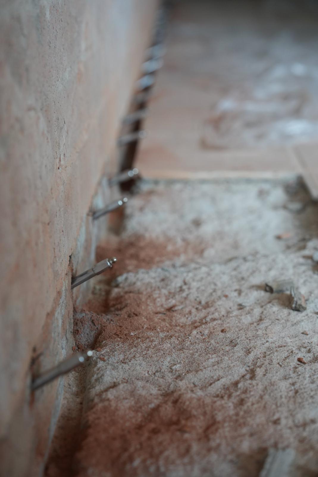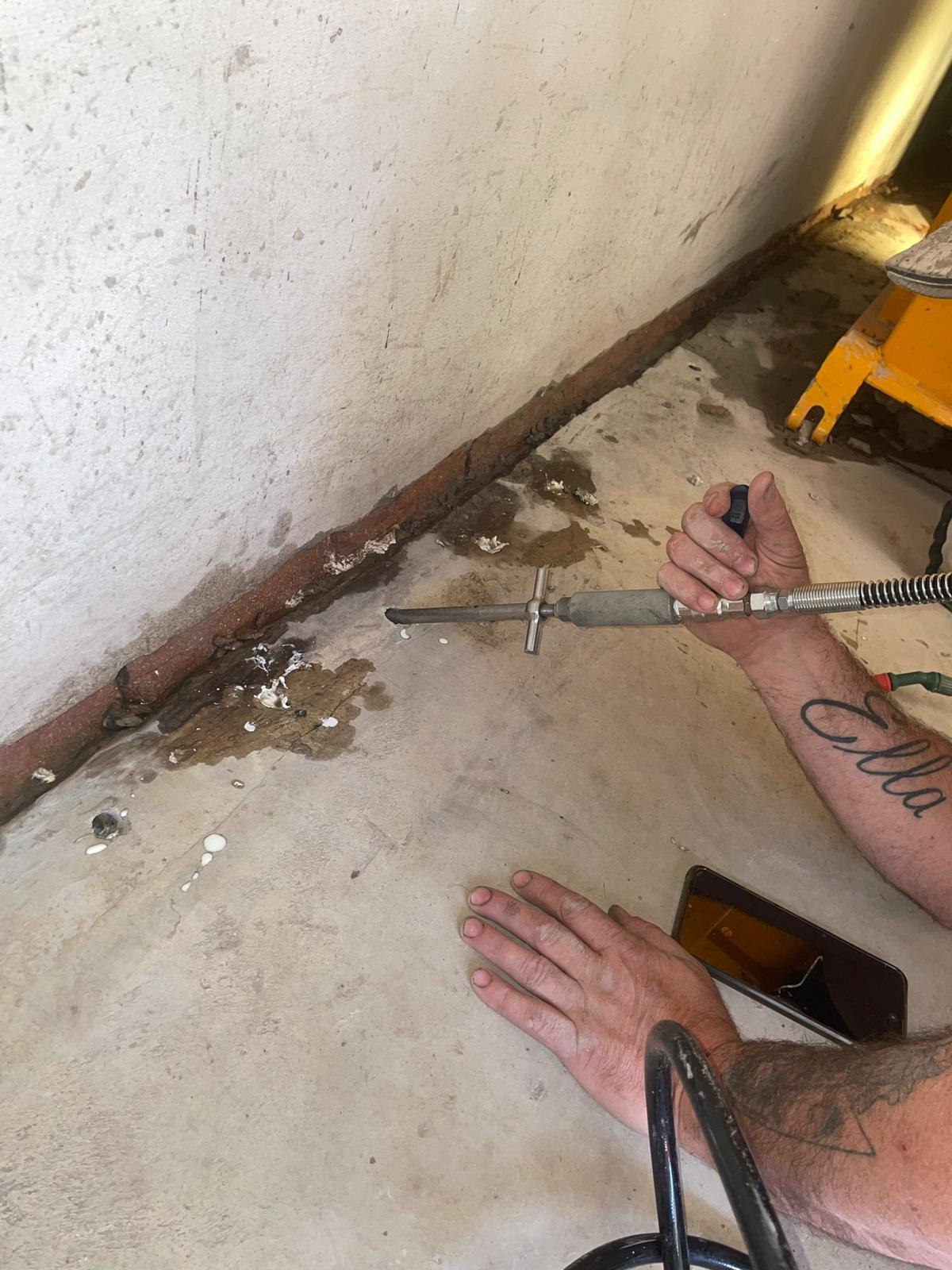 We repair water leaks in block and brick structures by injecting specialised waterproofing resins into cracks, joints, and porous areas where water is penetrating. This method seals hidden leak paths within the masonry, helping prevent further water intrusion while maintaining the structural integrity of the wall.