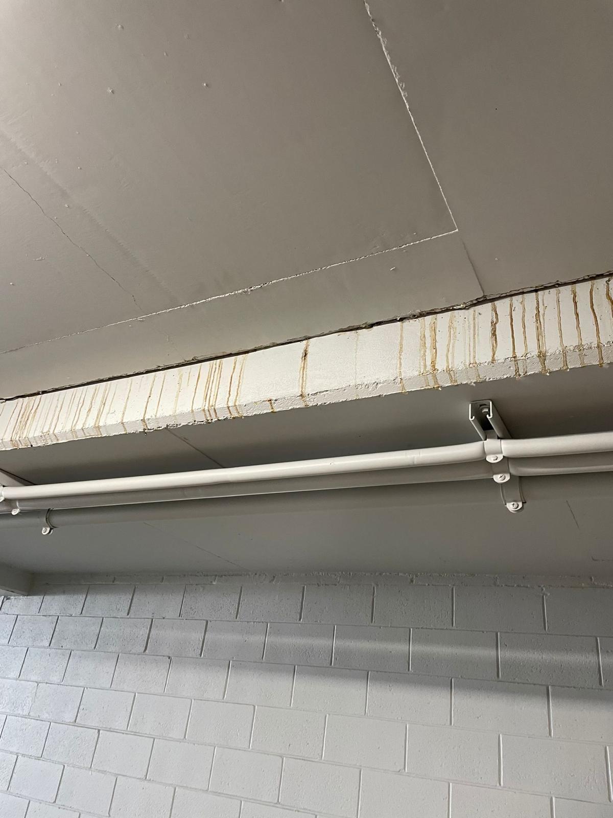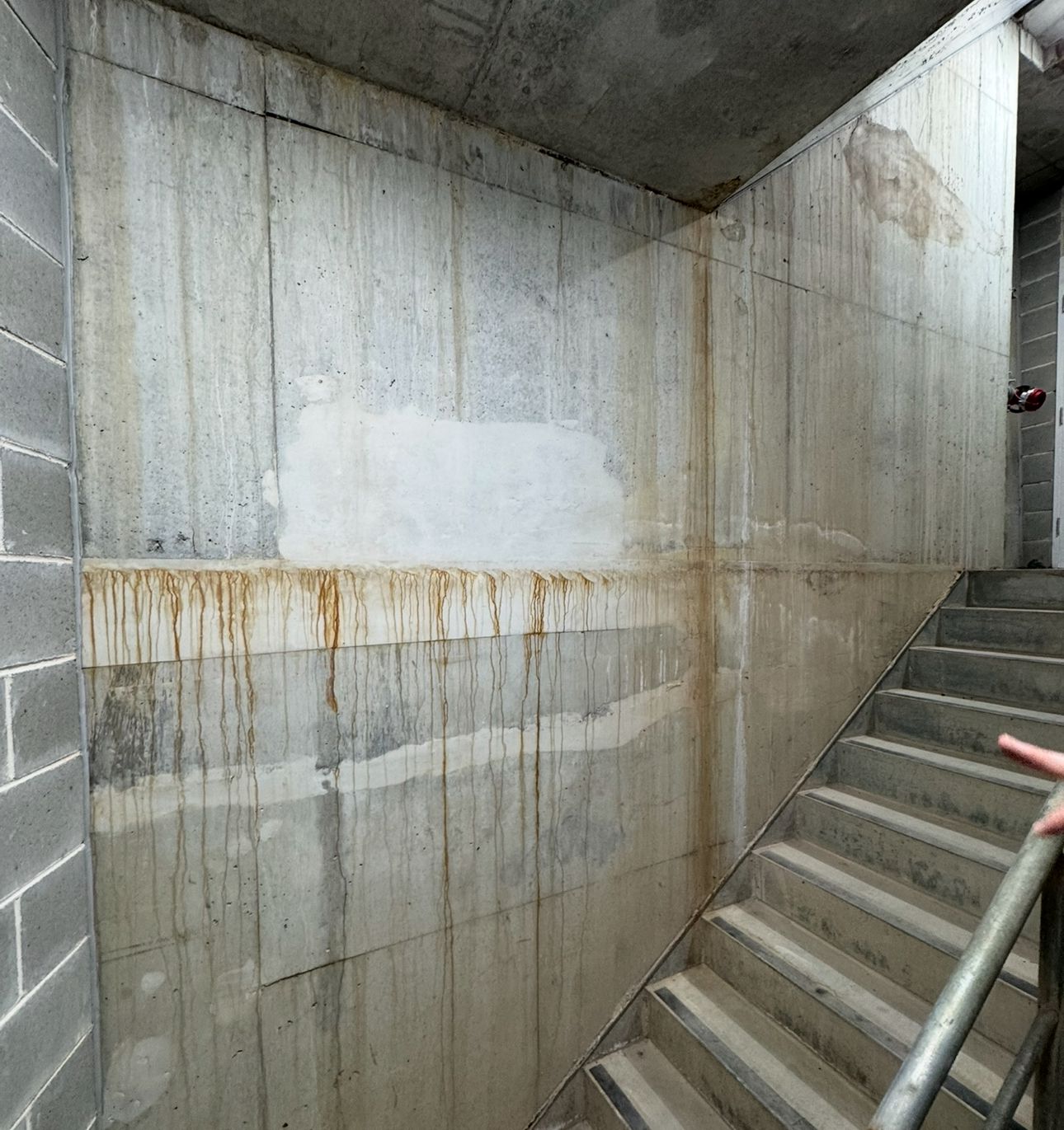 Common signs of water ingress in concrete structures include: